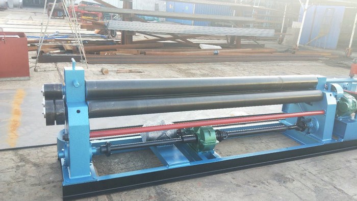 液壓下拉式卷板機(jī)主要特點(diǎn):該機(jī)上輥可以垂直升降,垂直升降的液壓傳動(dòng),通過(guò)液壓缸內(nèi)的液壓油作用活塞桿而獲得;下輥?zhàn)餍D(zhuǎn)驅(qū)動(dòng),通過(guò)減速機(jī)輸出齒輪嚙合,為卷板提供扭矩,下輥下部有托輥,并可調(diào)節(jié)。上輥呈鼓形狀,提高制品的直線度,適用于超長(zhǎng)規(guī)格各種截面形狀罐。
